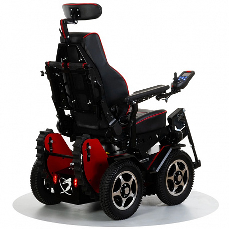 Инновационное сочетание колесного и гусеничного привода помогает пользователю инвалидной коляски быть максимально независимым. Колесный режим используется для комфортного движения по дорогам, а гусеничный ход необходим для преодоления лестниц и бордюров. Пневматические колеса позволяют использовать коляску на легком бездорожье и преодолевать порожки до 5 см.