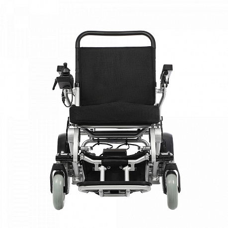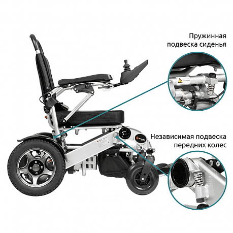 Коляска инвалидная с электроприводом Ortonica Pulse 640 - легкая и прочная с удобным механизмом складывания без съема аккумуляторов. Модель в сложенном виде не превышает размеров дорожного чемодана. Регулируемая по жесткости пружинная подвеска сиденья и независимая подвеска передних колес предохраняют позвоночник от вибраций и обеспечивают плавность хода.