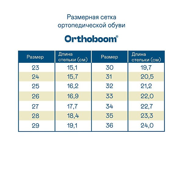 Полусапожки ортопедические Ортобум с шерстью для мальчиков 67055-02 ледяной кобальт ОРТОБУМ Верх: текстиль/искусственная кожа Подклад: шерсть Подошва: ТЭП Вид застежки: 3 ремня-липучки Модель с продуманной конструкцией и уникальным дизайном. Инновационная анатомическая колодка, обеспечивающая правильное положение стоп, сводоформирующие стельки, а также другие ортопедические элементы препятствуют развитию плоскостопия или предотвращают дальнейшую деформацию, если патология уже выявлена. За счет широкой раскрываемости модель легко надевается и снимается без дискомфорта. Для верха используется текстиль/искусственная кожа, внутри — шерсть, что гарантирует отличную износостойкость и правильный микроклимат. А нескользящая подошва снижает риск падения на любой поверхности. Зима в такой обуви пройдет с максимальным комфортом независимо от климатических условий. Подбор размера Определите размер по следующей последовательности:     1. Поставьте ногу на чистый лист бумаги.    2. Отметьте крайние границы ступни.    3. Измерьте расстояние между самыми удаленными точками стопы.    4. Найдите соответствующий размер в таблице размеров, расположенной ниже. 67055-02irk /upload/iblock/9b7/9b72071151ea6bbcfb7cb2b7112e0b71.jpg