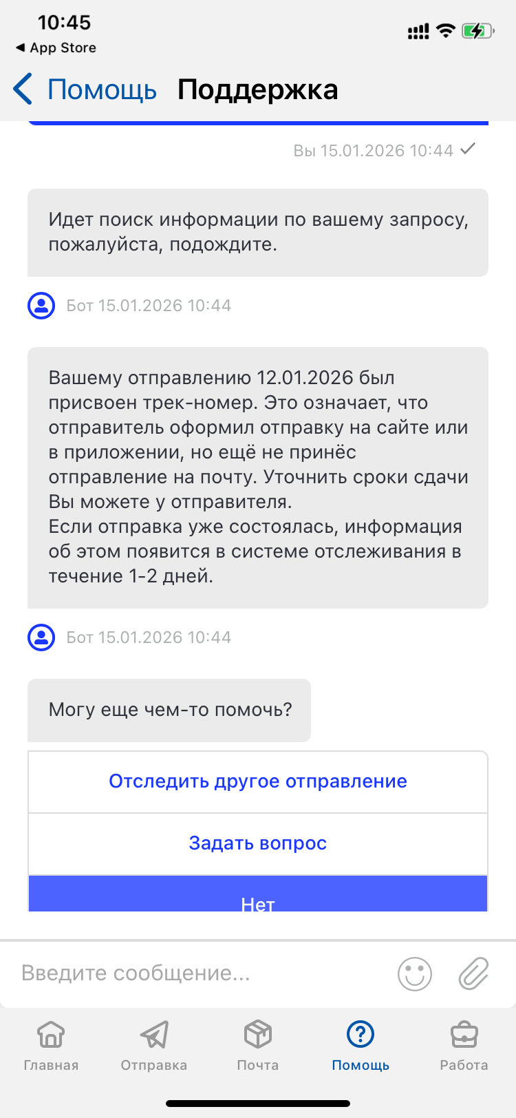 Здравствуйте. Спасибо за обратную связь. Действительно со стороны оператора произошло недопонимание, заказ фактически был отправлен на почту России 13.01.26г., но в связи с большой нагрузкой в отделении, они обработали его только 15 января. К сожалению мы не можем повлиять на скорость обработки заказа Почты России. Приносим извинения за произошедшую ситуацию.